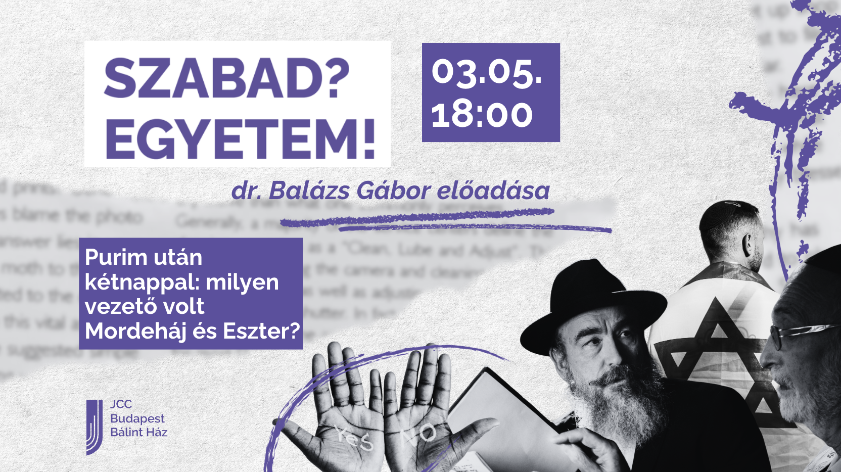 Purim után kétnappal: milyen vezető volt Mordeháj és Eszter? - dr. Balázs Gábor előadássorozata
